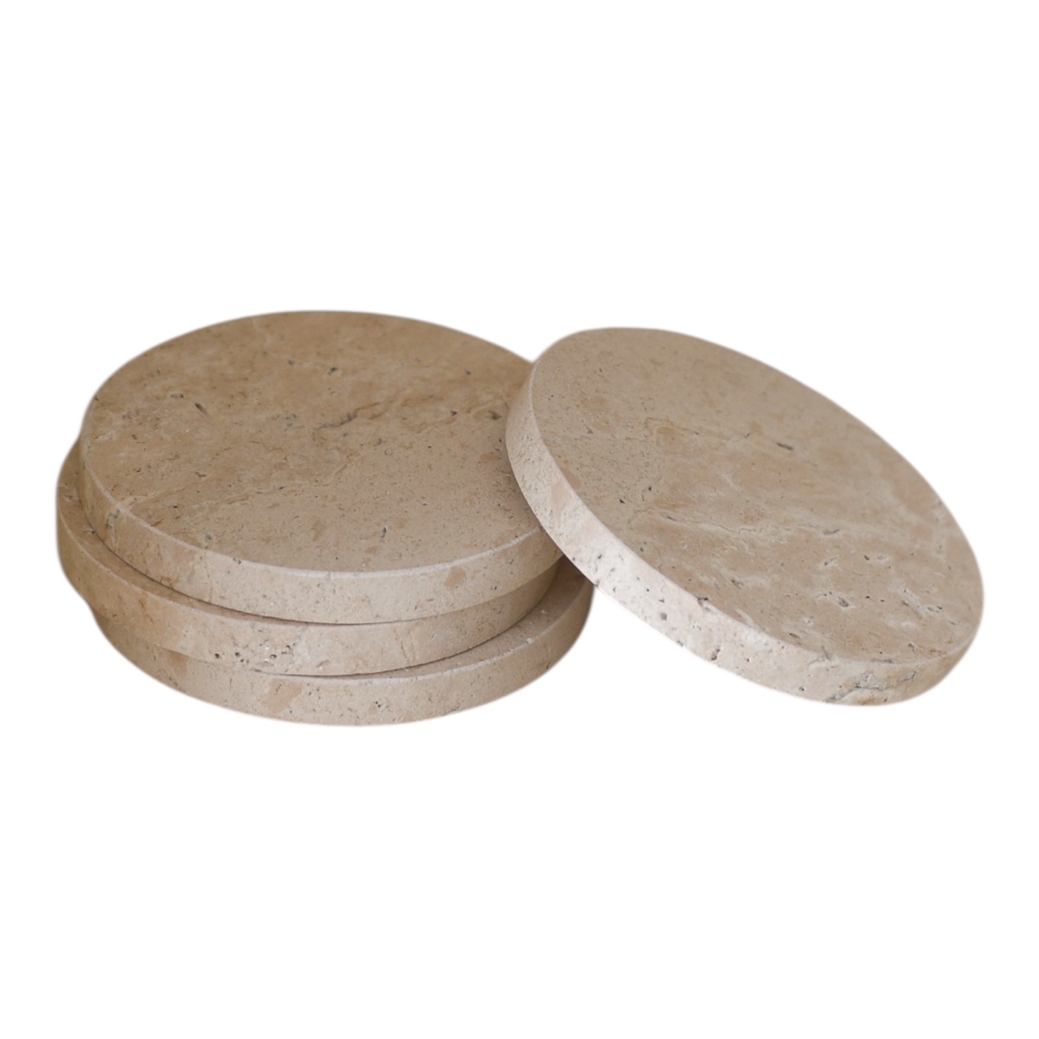 Ronde onderzetters met een zachte, natuurlijke uitstraling. Gemaakt van hoogwaardig beige marmer. Beschermen je oppervlak én geven karakter aan je koffietafel. Verpakt per 4 stuks.